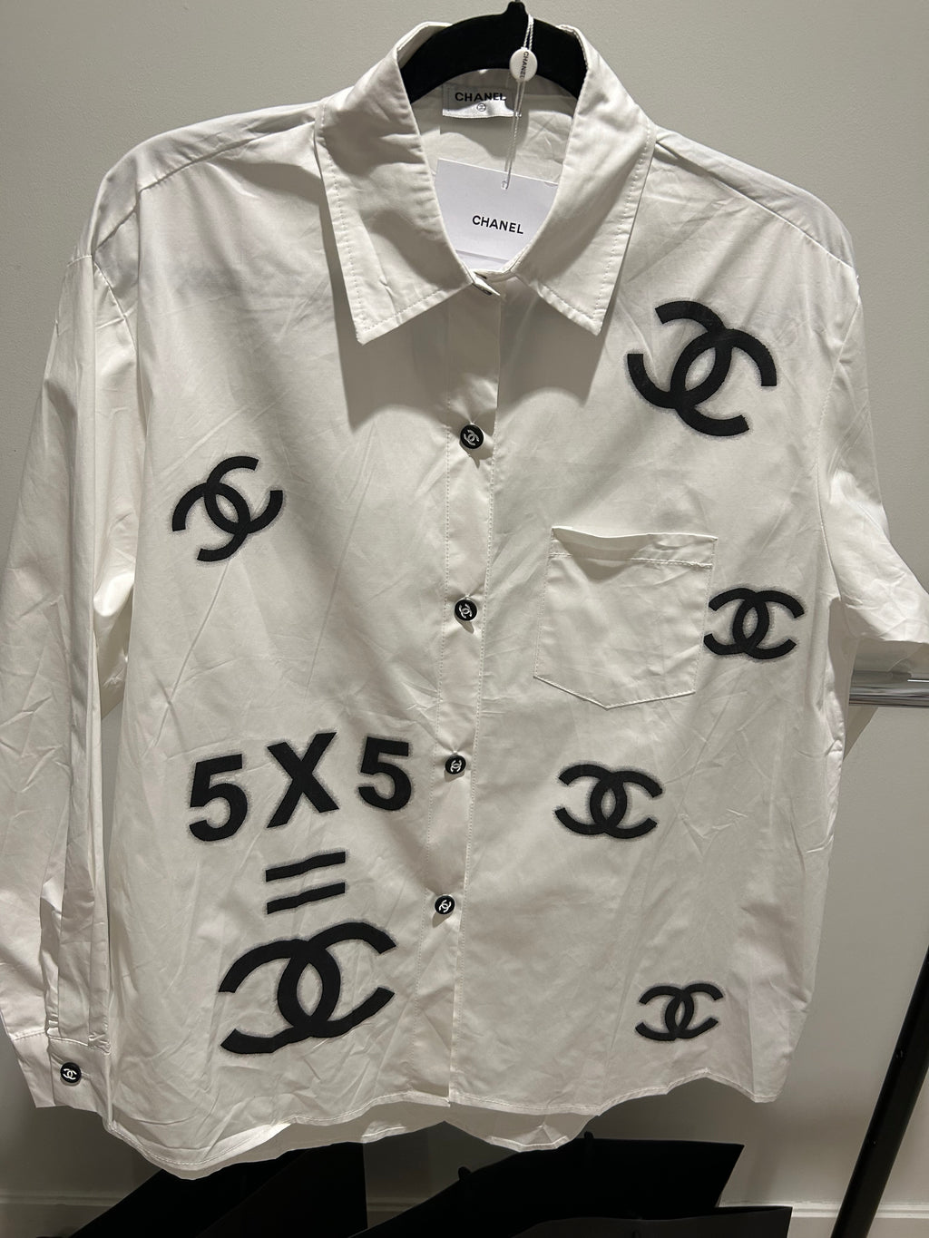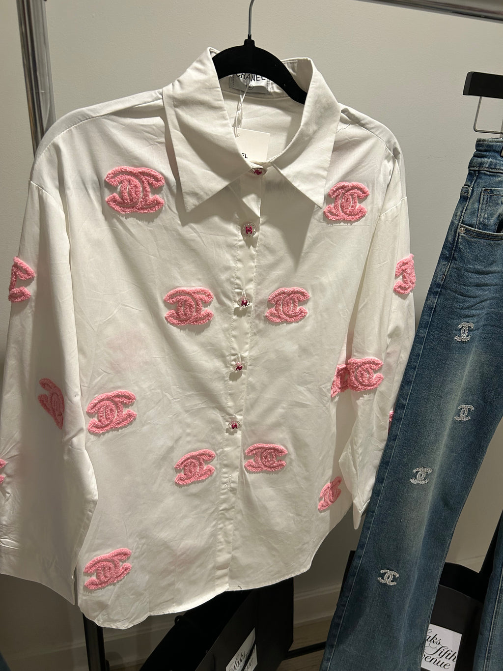 NOVELTY COLLECTION PINK AND WHITE CHANEL INSPIRED BUTTON UP