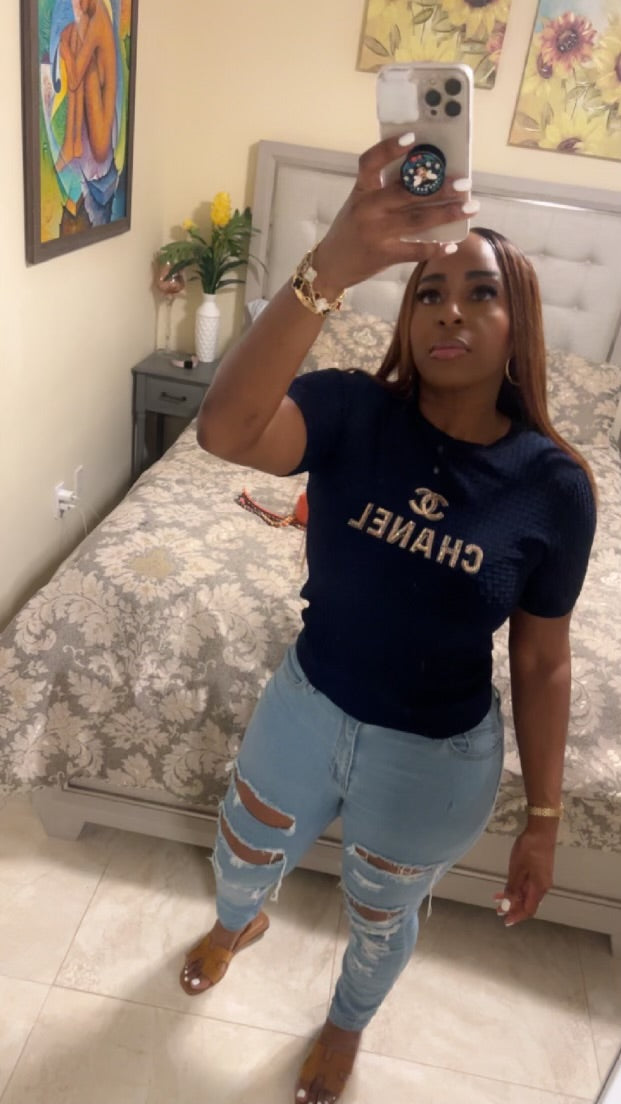 NOVELTY COLLECTION CHANEL INSPIRED SUPER STAR GOLD CHSIN PURSE TEE