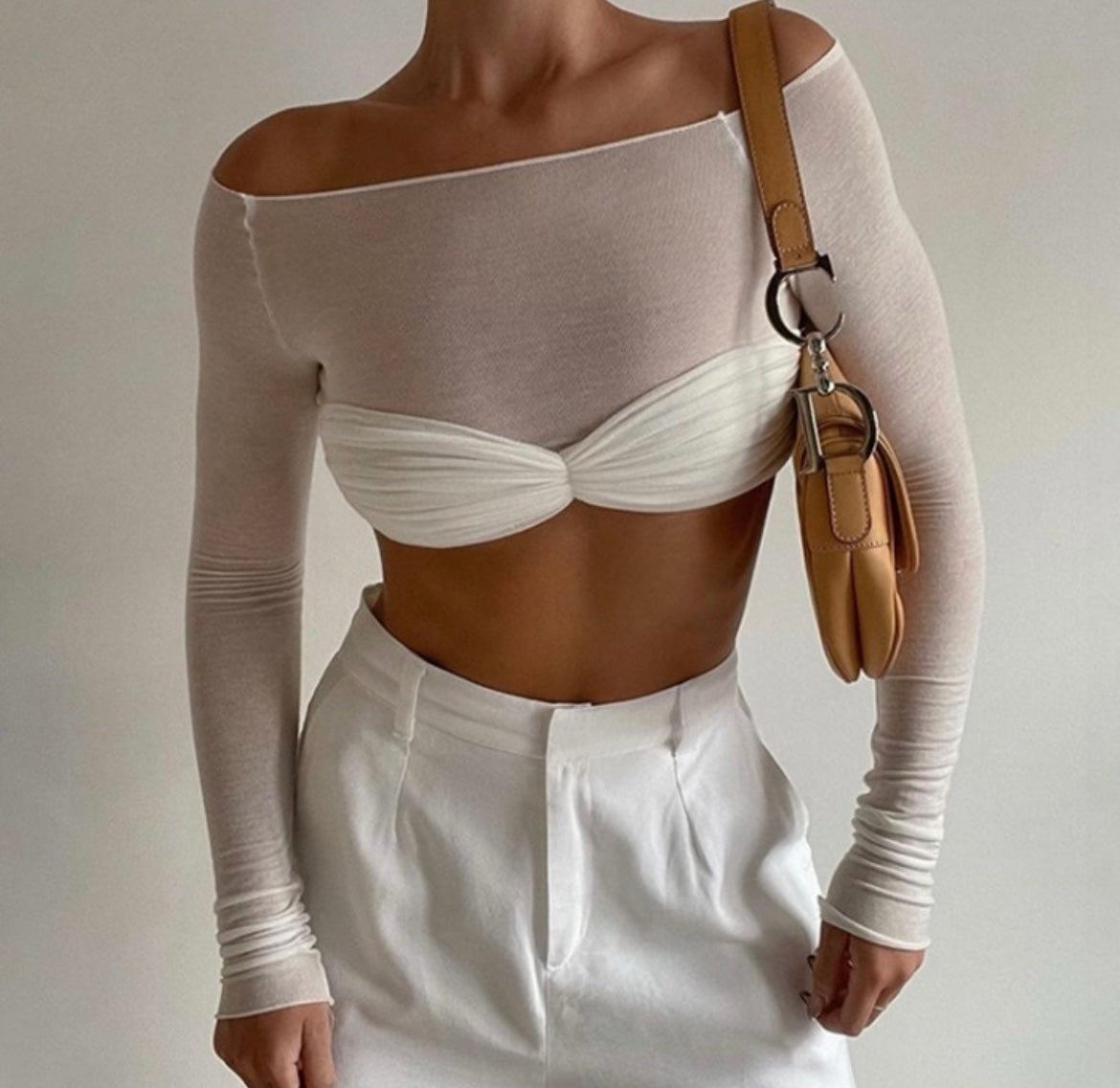 Comfy sexy white crop top long sleeve